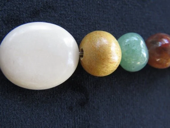 Fossil stone earrings with Nangka wood, green aventurine, poppy jasper and coffee bean jasper.